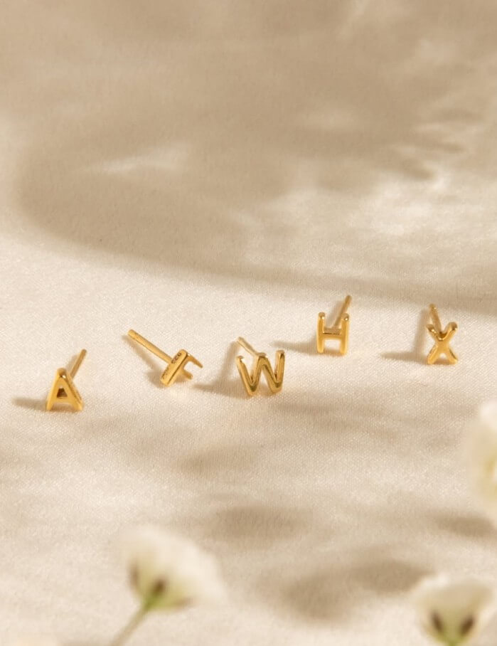 Custom Initial Minimalist 925 Sterling Silver Stud Earrings