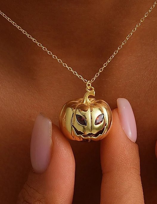 Gold 925 Sterling Silver Birthstone Pumpkin Necklace Halloween Gift