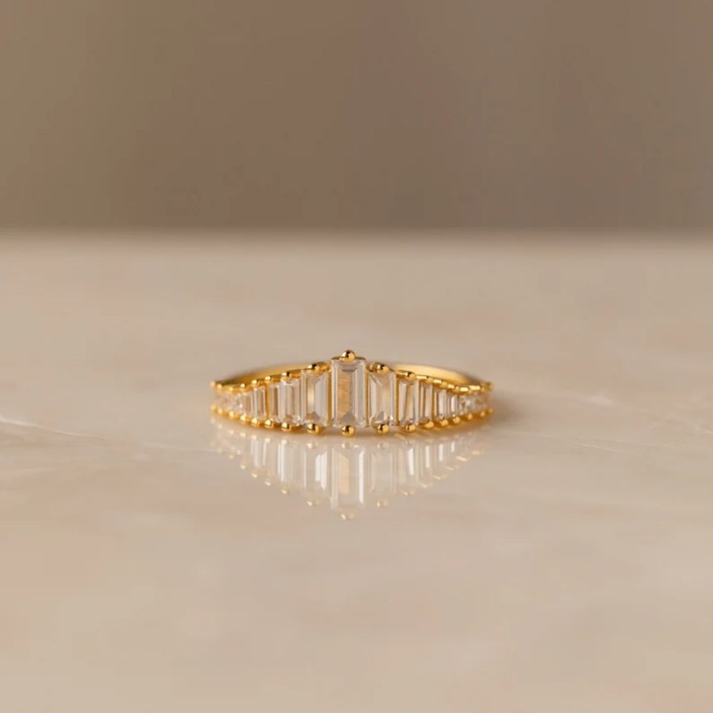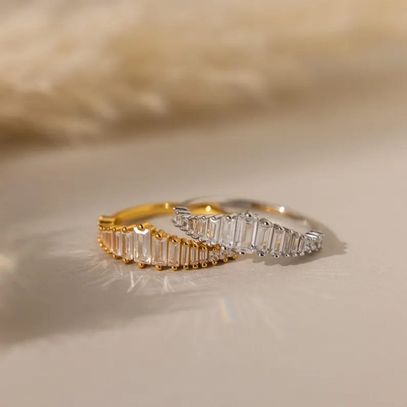 1. 14K Gold Plated Oval 5A Cubic Zirconia Eternity Stackable Ring For Women