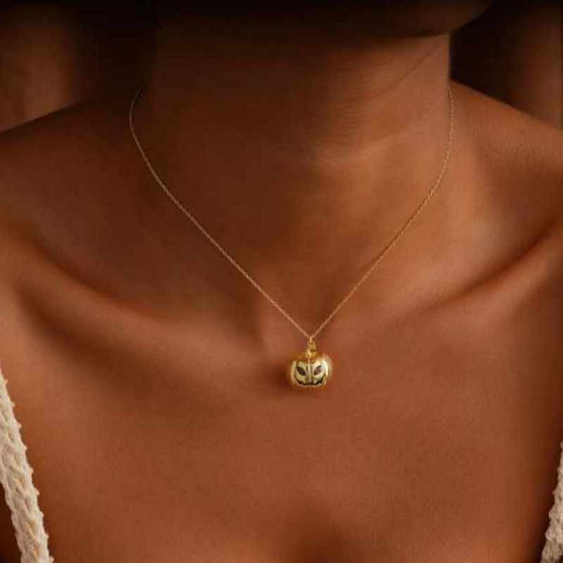 Gold 925 Sterling Silver Birthstone Pumpkin Necklace Halloween Gift